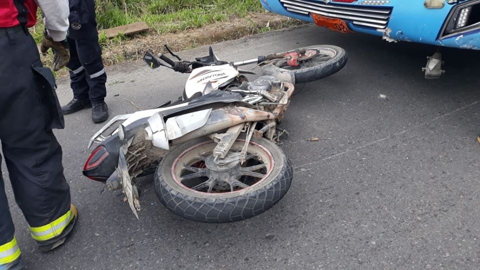 Siendo las 13:30 se recibe una llamada del Ecu 911, indicando de un accidente de tránsito en el Km. 63 vía Quito – Los Bancos, enseguida el personal de Bomberos y Gad Provincial de Pichincha acuden al lugar en la unidad de rescate UR-003, al llegar se visualiza el choque frontal entre un bus de la Cooperativa Aloag y una motocicleta Daytona DY200, color blanco con 3 ocupantes en el lugar ya se encontraban Bomberos Quito por lo que se procedió a prestar colaboración; producto del accidente resultaron heridos las 3 personas de la moto y fueron trasladados al Hospital de Nanegalito en las Ambulancias de Bomberos Quito y Gad Provincial de Pichincha.